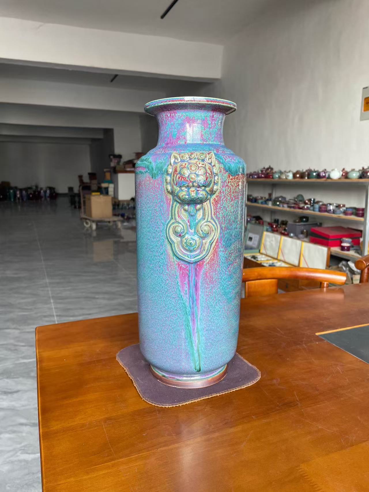 Each piece is 100% hand-thrown and glazed, showcasing the legendary “kiln change” technique: under high temperature, the glaze flows and transforms naturally, creating a mesmerizing iridescent gradient of sky blue, emerald green, and rose purple. No two vases are identical—yours is a unique work of art.